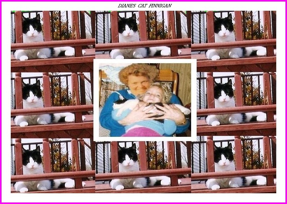 Diane's cat Finnigan featured here, in the center photo is June O'Brien,