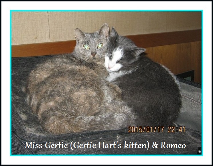 Diane wants to remind us of the anniversary of Gertie's death on January 23rd 2014 at the age of 109 years and 10 months, just missing her April 10th birthday by 60 days. Below on the left was Gertie's favorite kitten, and her name sake, from a litter of wild cats at her home in Katrine.  Gertie would be so happy to know that "Miss Gertie" is doing just fine.