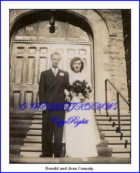 Ruth was married to Archie Warren Beard and they had three children their son Bill Beard and two daughters Vera and Mable before Archie died in 1916 in WWI. Vera's first marriage was to Mr.Connaty and the Connaty family consists of the oldest son Archie, sisters June, and Isabelle, and young Donald. Archie had 2 children, June had 5 children, Isabelle had 4 children, and Donald had 5 children. The wedding of Donald and Jean is pictured below. |