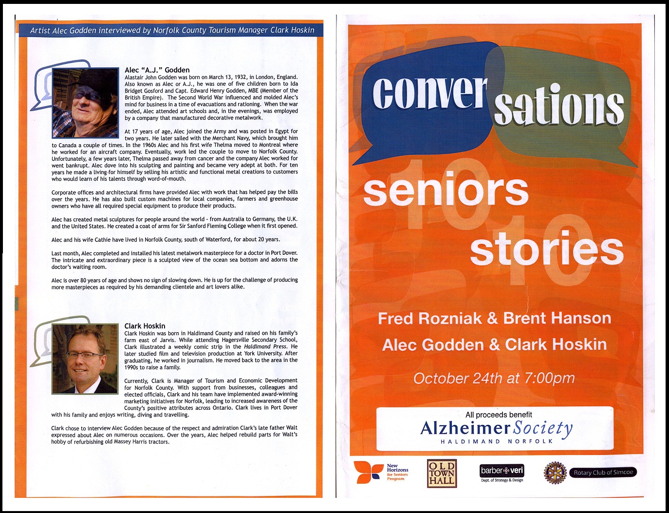 On wednesday October 24th 2012 Alec Godden was interviewed in Waterford Ontario at the Old Town Hall. The attendence was very impressive and the Artist was in fine form. The organizers of this event have released the video on YouTube the link has been posted here on this website.